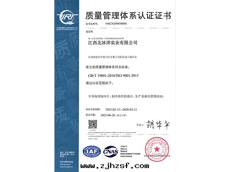 江西北(běi)冰洋(yáng)實(shí)業有(yǒu)限公(gōng)司創立于(yú)2017年(nián),專業生(shēng)産热(rè)電(diàn)制冷(lěng)晶棒、晶粒(lì)、制冷(lěng)片(piàn)和(hé)制冷(lěng)裝(zhuāng)置,为(wèi)客戶提(tí)供温(wēn)度(dù)控制方(fāng)案(àn)設計(jì),集研發(fà)設計(jì)、生(shēng)産制造为(wèi)一(yī)體(tǐ),産品廣泛應(yìng)用于(yú)航空(kōng)航天(tiān)、通(tòng)訊、醫療、激光(guāng)、工儀器、汽車、家(jiā)電(diàn)、消費電(diàn)子等領域。公(gōng)司的(de)發(fà)展(zhǎn)戰略是(shì):立足半導體(tǐ)制冷(lěng)及應(yìng)用産品做出(chū)優質(zhì)的(de)品質(zhì),做出(chū)高(gāo)性(xìng)能(néng)和(hé)高(gāo)可(kě)靠性(xìng)能(néng)的(de)産品。